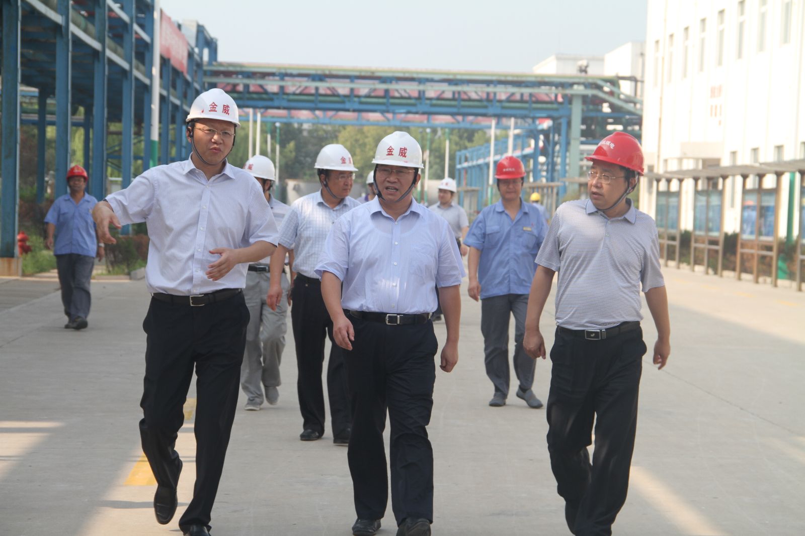 座谈之前,穆杰一行四人在李合军陪同下先后实地查看了金威煤电公司化工厂、电厂、码头等厂。