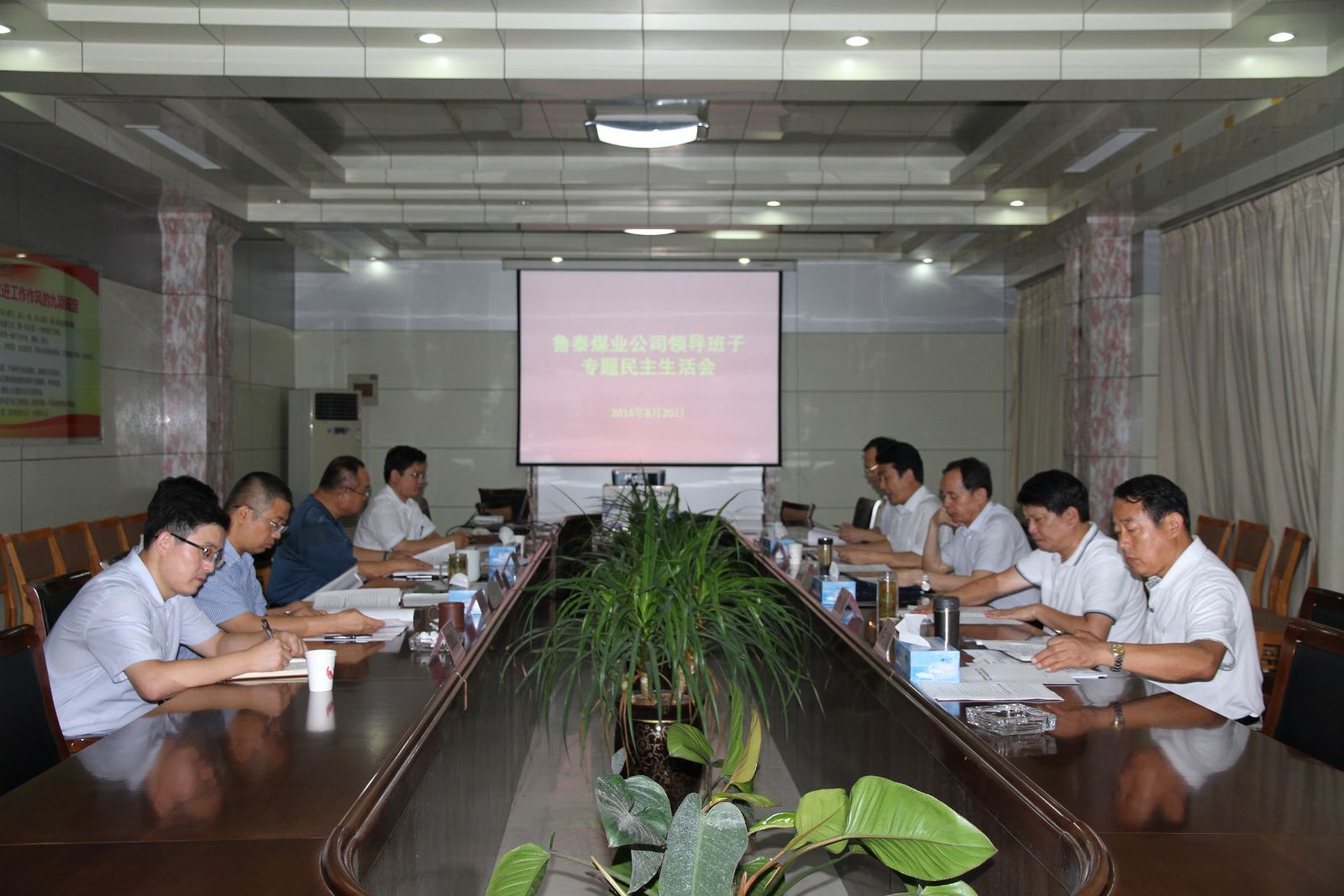 按照市委部署要求,经市国资委党委教育实践活动领导小组办公室同意,8月20日,鲁泰煤业公司领导班子利用一晚上的时间召开了专题民主生活会,按照"照镜子、正衣冠、洗洗澡、治治病"的总要求,以"为民、务实、清廉"为主题,聚焦"四风"问题,坚持实事求是,以整风精神严肃认真地开展批评和自我批评,明确整改方向和主要措施。