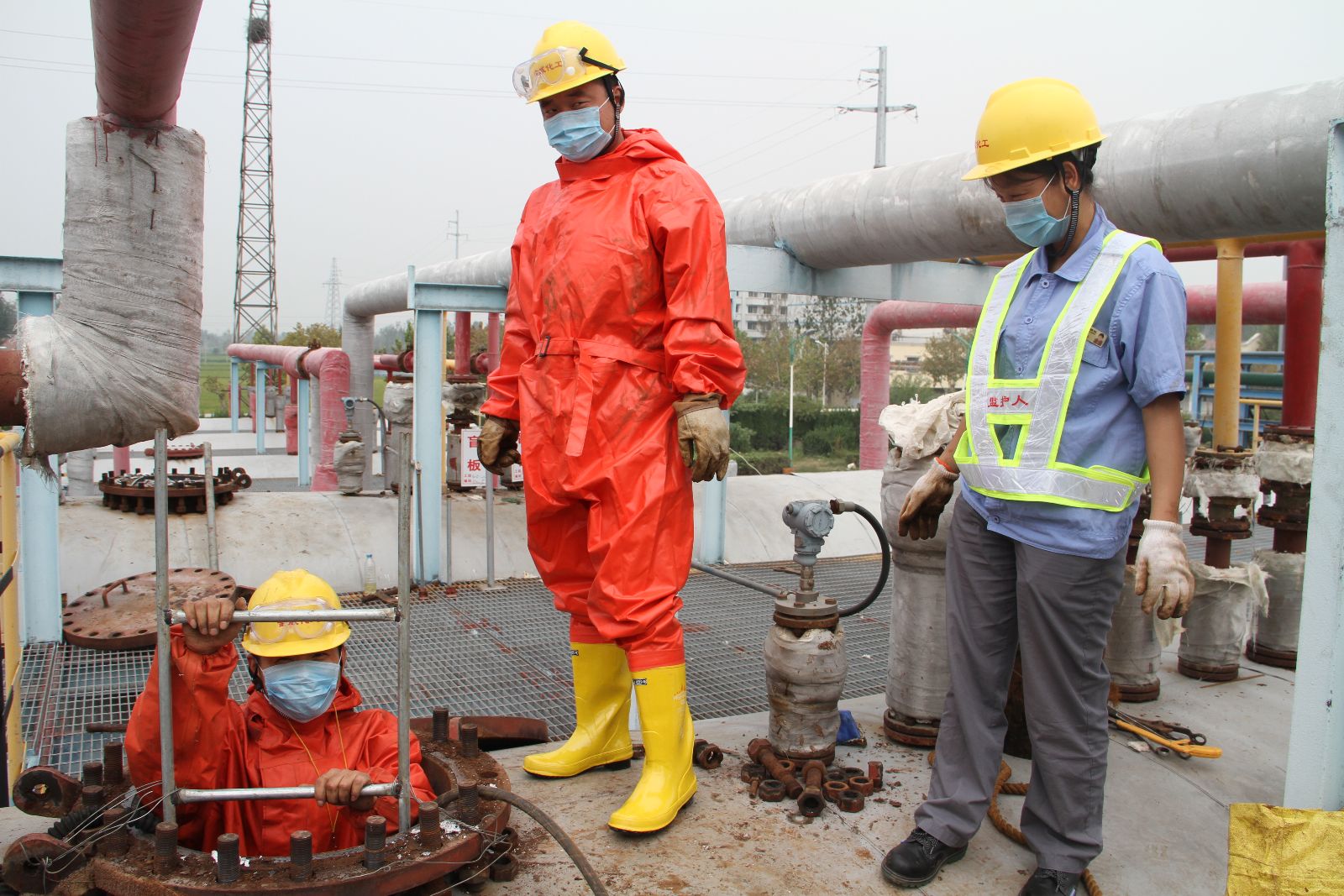 申玉海对安全工作进行了重点强调:一要提高对安全工作的认识,安全是最大的效益,是最大的政治。二是加强现场安全监管,各类票证要求现场办理。三是继续执行安全升级管理。四是各类劳保用品的正确佩戴,特别是涉及酸、碱及液氯等特种作业要准备齐全。五是各类工器具要满足检修要求。六是新建气防站要满足随时投用的条件,发挥作用。七是登高脚手架的架设,要按照规范要求。八是严格盲板抽堵管理。九是进入贮槽必须与系统可靠隔离,按照进入受限空间作业严格要求,并设专人监护。十是深入开展学习万华安全管理,不让火星落地,铺设防火毯。十一是组织安全检查,对现场检修作业"三违"及时检查、纠正和处理。