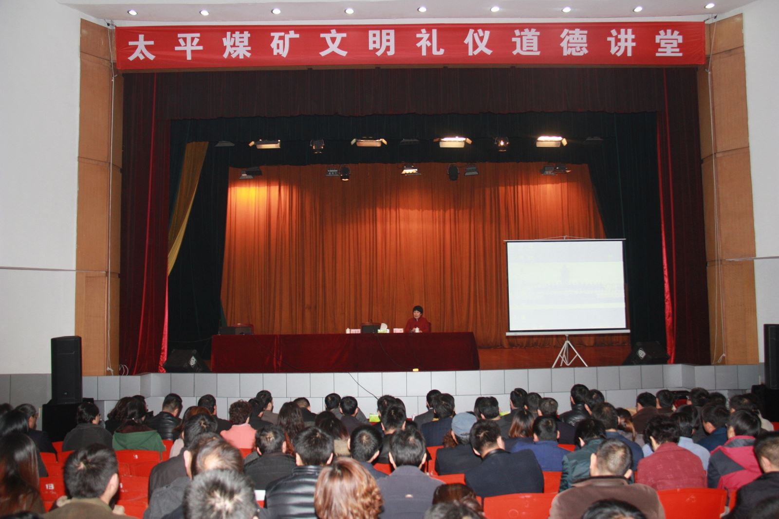 为贯彻落实党的十八届四中全会精神,推动公司"转作风、保安全、提效益、促和谐"活动深入开展,打好决战四季度攻坚战,按年初工作安排,在全矿广泛普及礼仪知识,大力倡树文明言行,引导干部职工积极践行社会主义核心价值观,讲文明、树新风,懂礼仪、塑形象,守纪律、促和谐,进而营造文明健康的人文环境,传递向上向善的正能量,推动企业实现安全科学和谐发展,太平煤矿隆重举办此次文明礼仪道德讲堂。