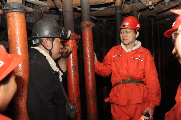 李合军总经理与正在工作面生产的采一工区干部职工亲切交谈,在与带班副区长马全的交谈中,李合军总经理了解了工作面隐患排查治理情况,要求每班进一步加化对工作面支架及顺槽超前支护支柱的班前、班中、班后补液。随后,李合军总经理还了解了一线职工的收入情况,勉励一线干部职工,增强责任意识,自我保安意识,严格细致地抓好安全生产工作,为企业的安全和谐发展再立新功。