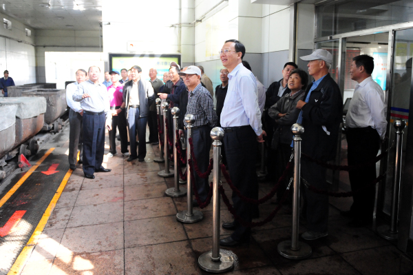 10月11日,市政协副主席、市委统战部部长张开朗同志带领市政协退休领导到鹿洼煤矿、金威煤电公司视察指导工作。集团公司党委书记乔志猛,鲁泰煤业公司总经理李合军、副总经理薛培华和鹿洼煤矿、金威煤电公司主要负责人陪同视察。