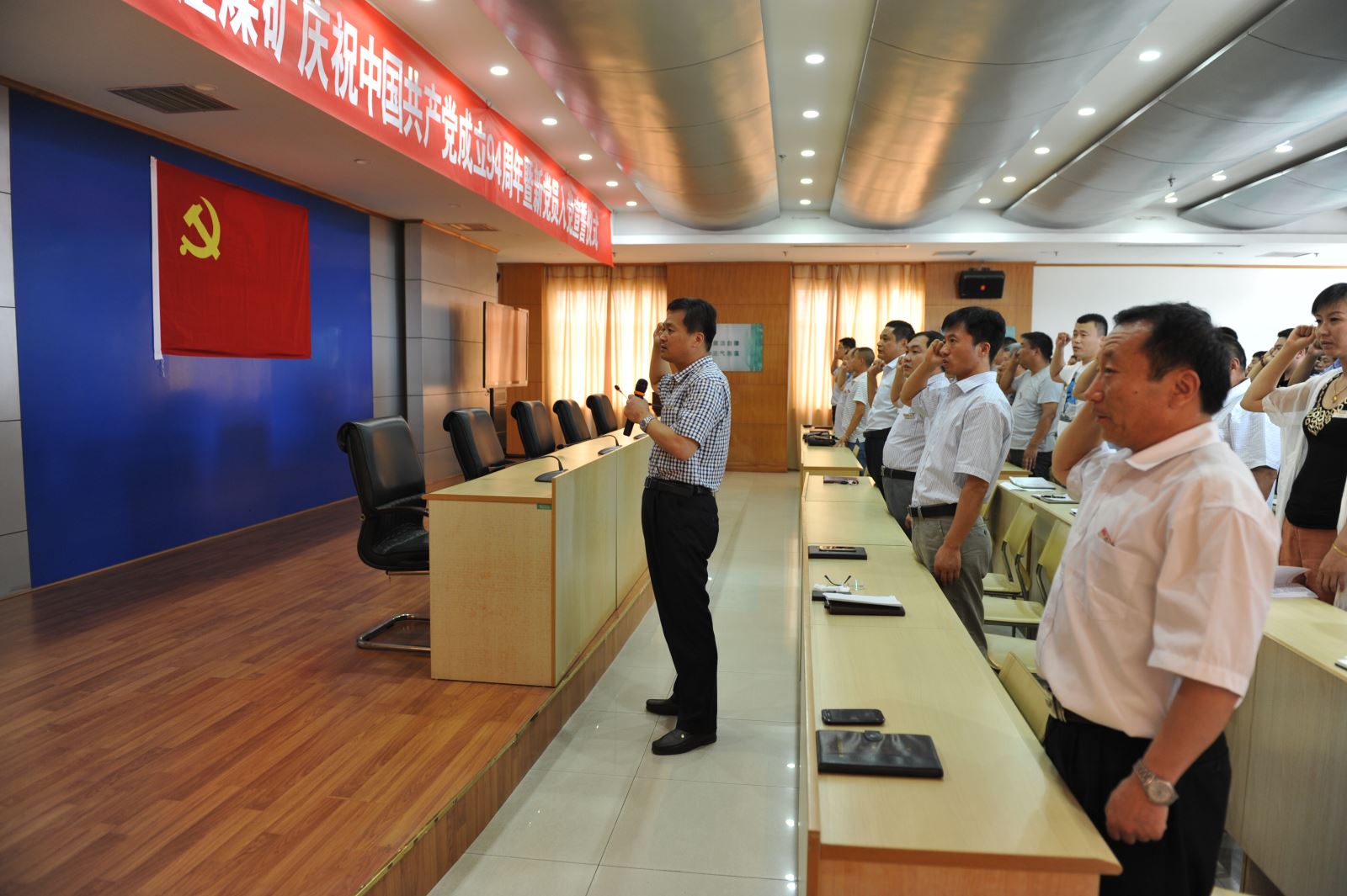 6月19日,鹿洼煤矿在行政办公楼四楼多功能厅举办了庆祝中国共产党成立94周年暨新党员入党宣誓仪式。矿领导班子成员,全矿新老党员参加了活动。