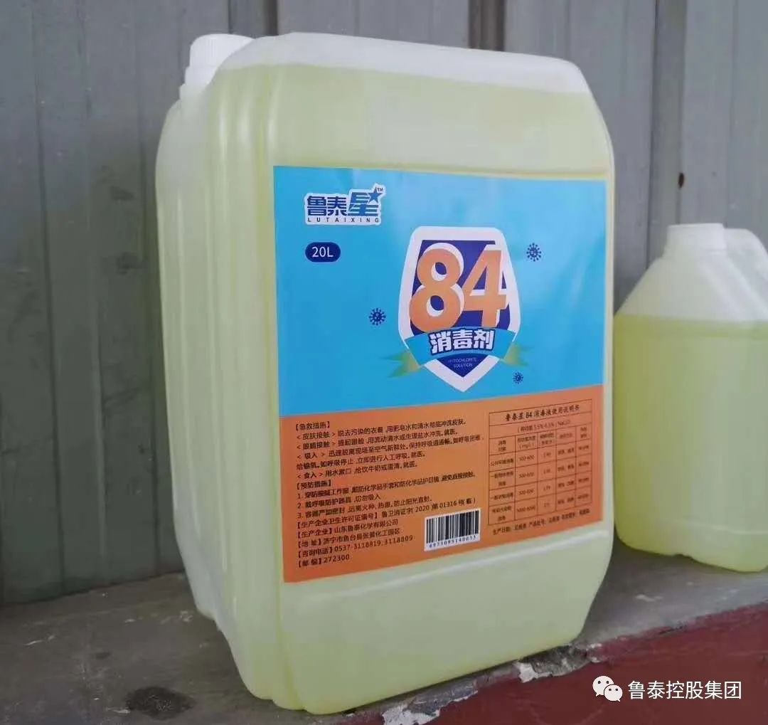 为更好地协助社会各界抗击疫情,积极履行国有企业社会责任,3月8日,集团公司首批“鲁泰星”牌84消毒剂成功投放市场。首批产品共有5L、10L、20L三种规格,非常方便各企业、店铺及社会群众使用。
