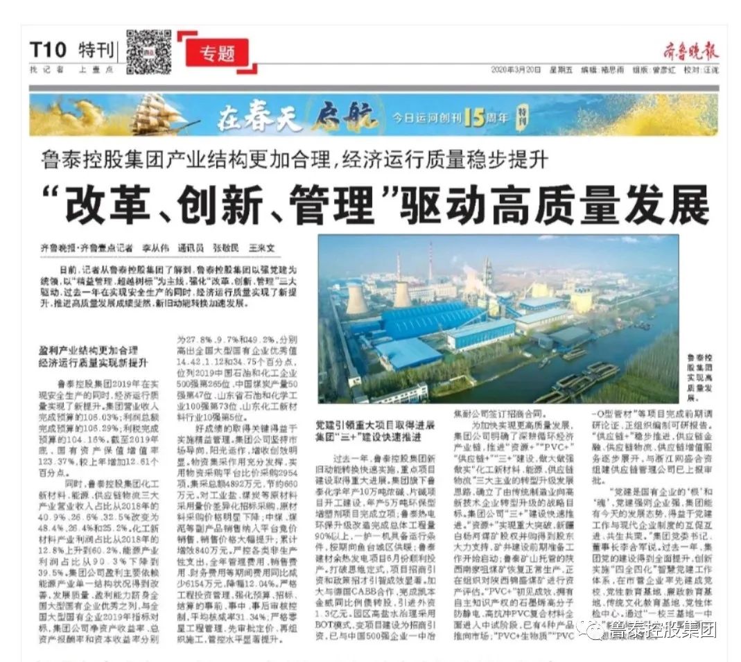 《齐鲁晚报》报道集团公司推动高质量发展成效